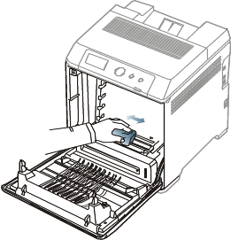 When you open the front cover and work inside the machine, it is highly recommend that you remove the paper transfer belt first. Because the work you do could contaminate the paper transfer belt.
