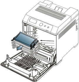 When you open the front cover and work inside the machine, it is highly recommend that you remove the paper transfer belt first. Because the work you do could contaminate the paper transfer belt. |