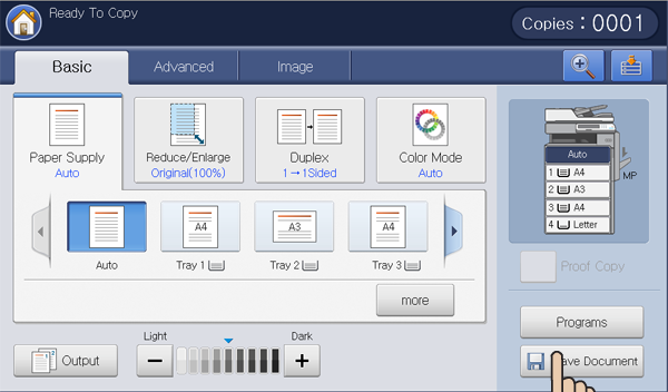 You can also set a paper tray with the button.