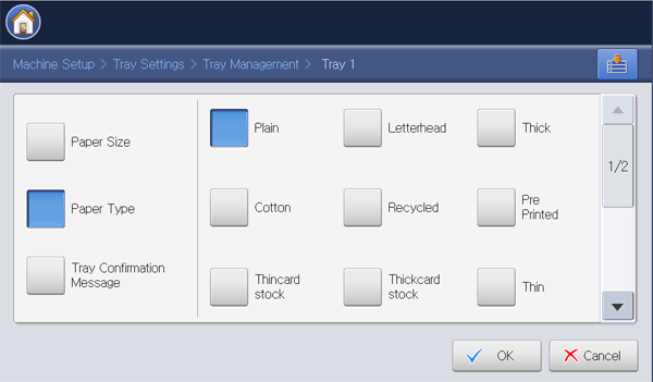 The media types are shown in the . This paper type option allows you to set the type of paper to be loaded in the tray. This setting appears in the list so that you can select it. This will let you get the best quality printout. If not, the desired print quality may not be achieved.