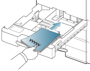 Print media should be loaded face down with the top edge going into the multi-purpose tray first and be placed in the center of the tray.