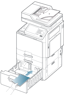 Align the paper and gently push it to the right side of the tray. Otherwise, it could cause paper jams.